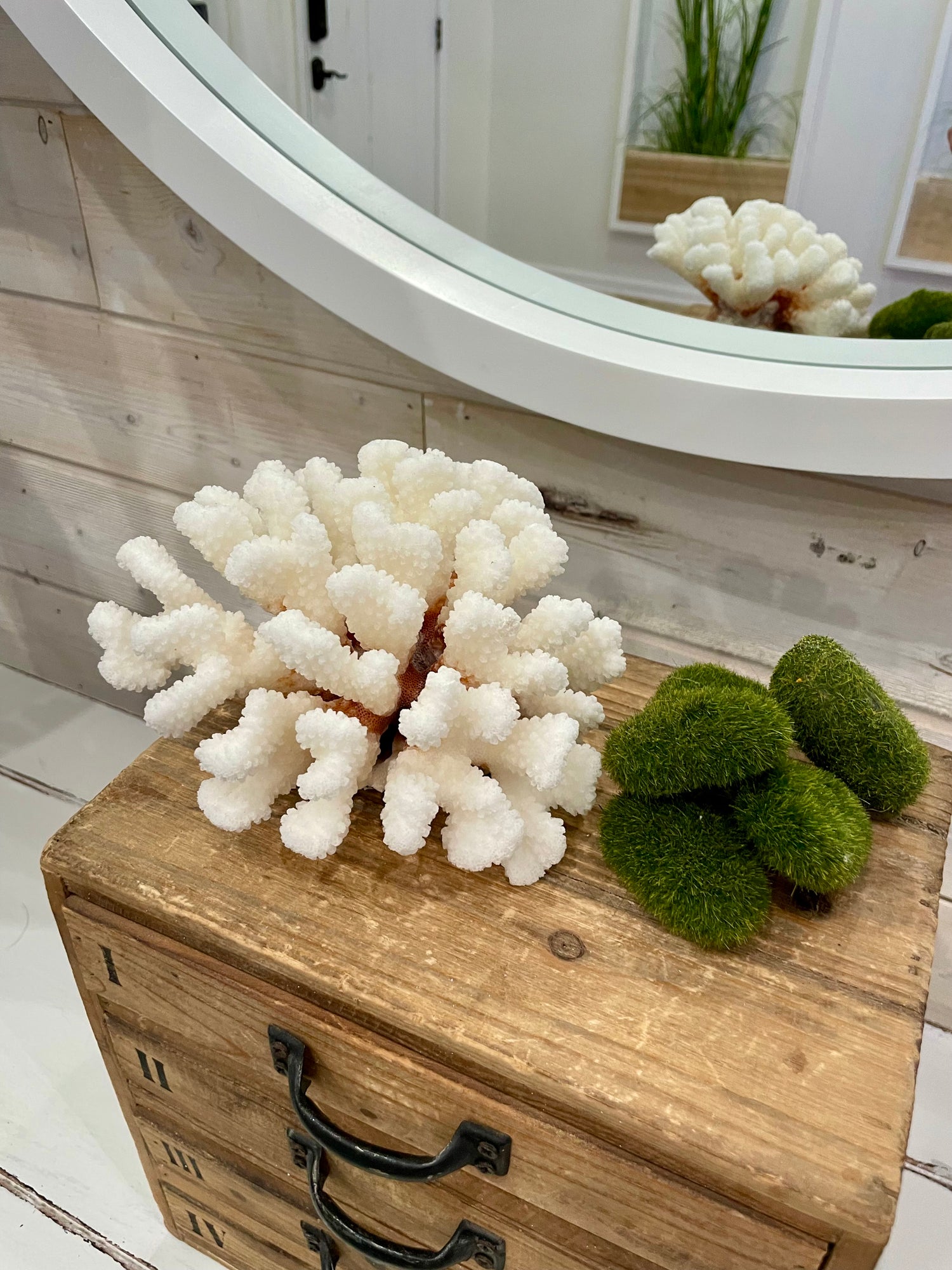 Coral is a wonderful accent piece for your beach or vacation home but is just a stunning in more traditional settings. We absolutely love mixing coral with our vintage industrial decor, we find it softens the look and the pop of color and organic shapes really add "wow factor" to the industrial look.