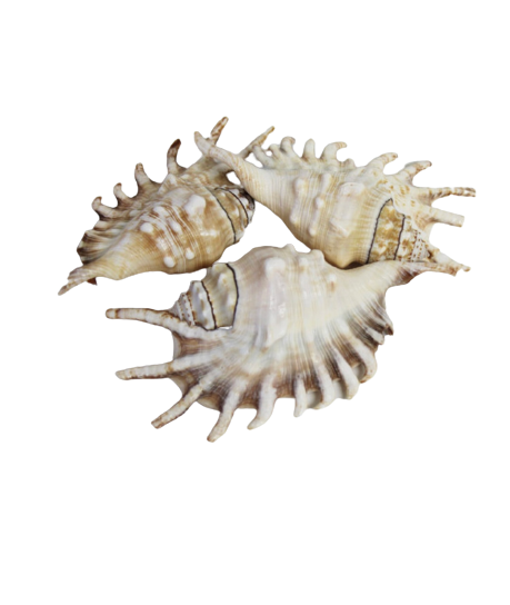 Millipede Spider is a classic lambis design. The legs are round and short in structure. The color extends from white, sand-colored with light brown shades. The underside has black furrows in the mouth. The size of an adult shell varies between 90-201 mm.