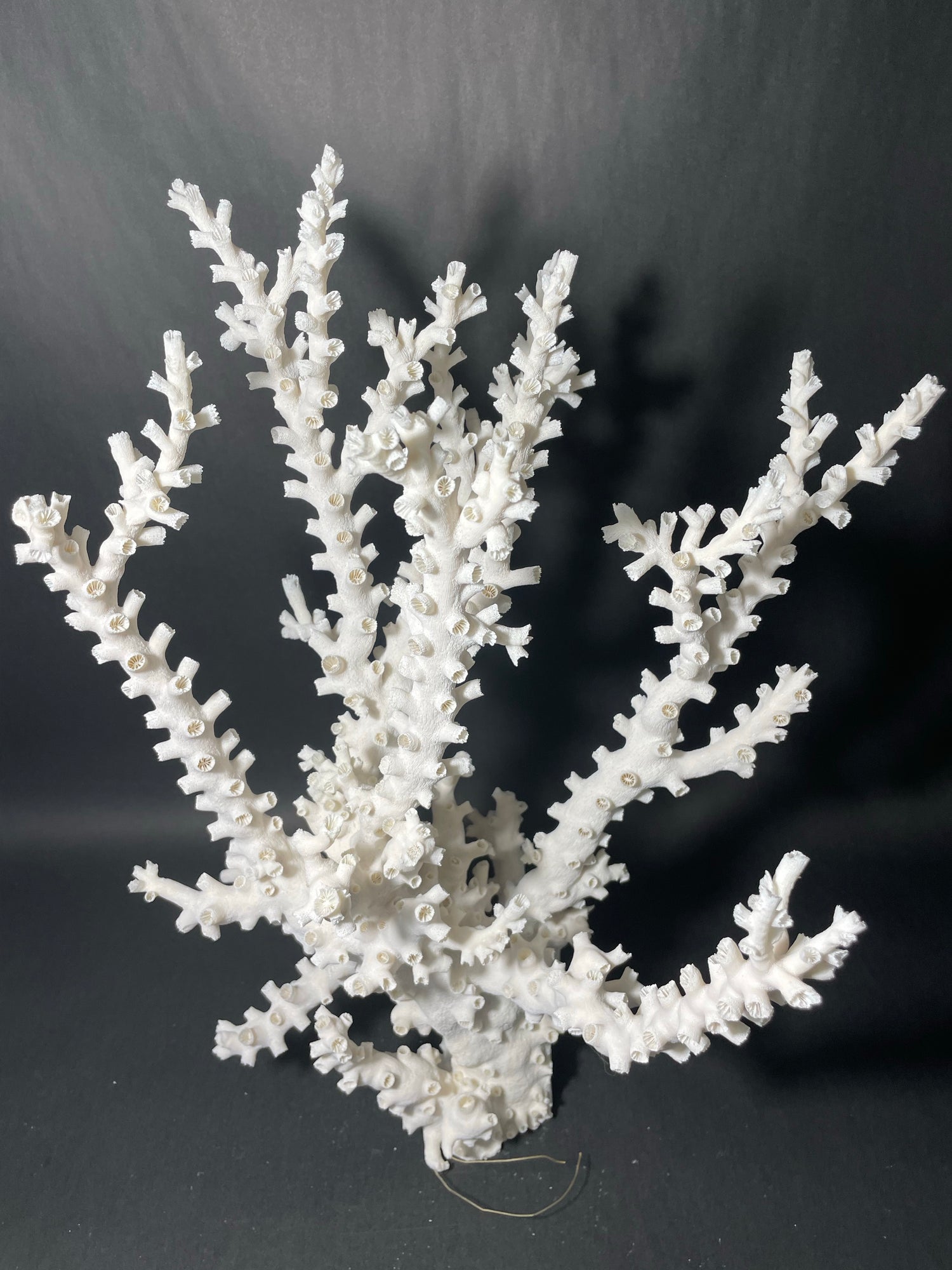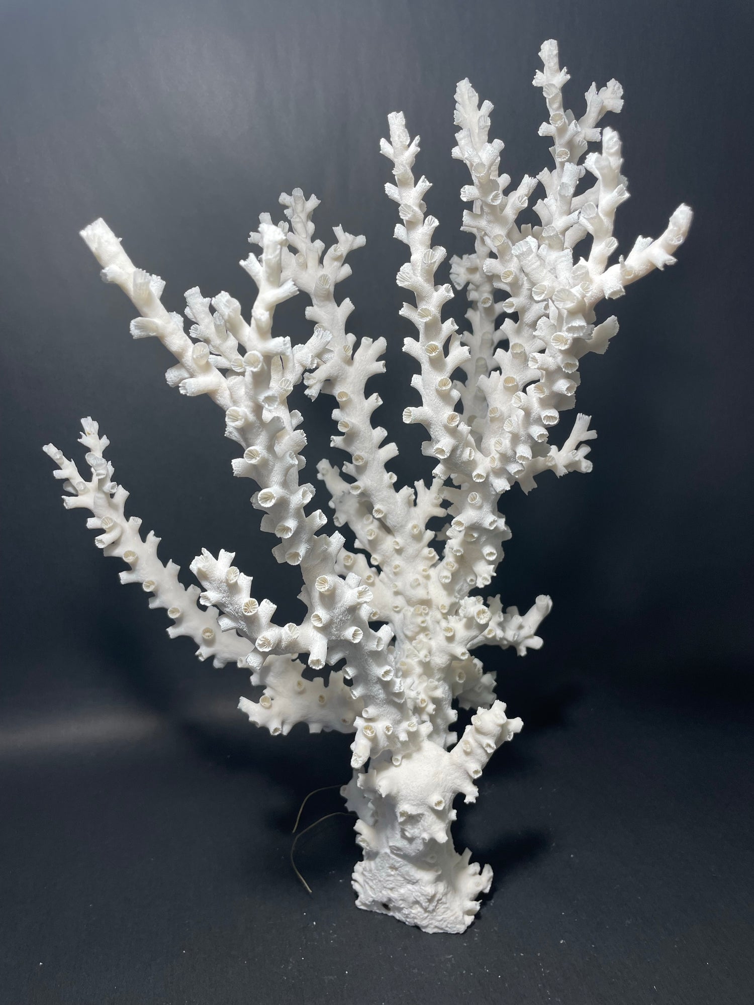 Octopus coral is a beautiful white ocean coral. Octopus coral have tentacle-like branches with small cup shaped structures, the branches typically stem out from a central trunk and angle upward. Branches are typically 1 to 3 inches thick