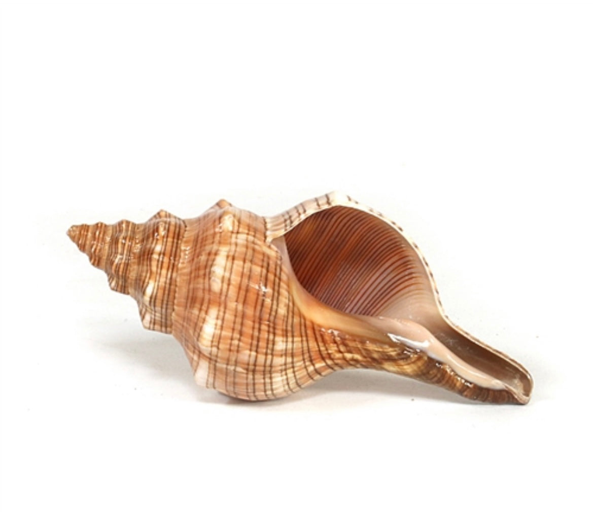 Striped fox horse conchs are thick heavy seashells that are reddish brown and cream in color. They display nicely upside-down with the opening facing up, making them particularly useful for candles, event centerpieces and planters. They are also used in aquariums as fish nurseries. Striped fox horse conch seashells are common to shallow waters of the Indo-Pacific.
